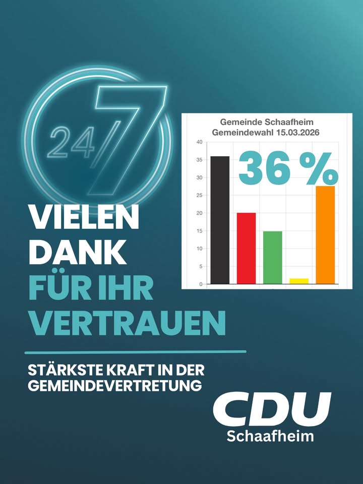 Am Sonntag entscheiden wir über die Zukunft unserer GemeindeWenn man durch Schaafheim, Mosbach, Schlierbach oder Radheim geht, merkt man schnell: Unsere Gemeinde lebt vom Engagement vieler Menschen.In Vereinen, bei der Feuerwehr, in Kirchengemeinden, Initiativen und Nachbarschaften übernehmen Bürgerinnen und Bürger Verantwortung für das Gemeinwohl.Auch Kommunalpolitik lebt von diesem Engagement ? von Menschen, die zuhören, abwägen und Entscheidungen treffen. Für unsere Ortsteile und für die Zukunft unserer Gemeinde.Am Sonntag, 15. März 2026, werden die Gemeindevertretung, die Ortsbeiräte und der Kreistag gewählt.Die Entscheidungen dort betreffen ganz konkrete Themen unseres Alltags:Kinderbetreuung und Schulen, Straßen und Infrastruktur, Unterstützung für Vereine, Sicherheit, die Entwicklung unserer Ortsteile sowie wichtige Themen im Landkreis Darmstadt-Dieburg wie Schulen, Krankenhäuser oder den öffentlichen Nahverkehr.Die CDU Schaafheim steht seit vielen Jahren für verlässliche Kommunalpolitik mit Augenmaß. Schritt für Schritt wurden Projekte angestoßen und umgesetzt ? immer mit dem Ziel, unsere Gemeinde lebenswert zu erhalten und verantwortungsvoll weiterzuentwickeln.Dabei zeigt sich immer wieder: Gute Ideen brauchen Mehrheiten.Wichtig ist auch das gute Zusammenspiel zwischen Gemeindevertretung und Bürgermeister. Seit 2021 führt Daniel Rauschenberger unsere Gemeinde engagiert und bürgernah. Vieles konnte in dieser Zeit gemeinsam auf den Weg gebracht werden.Damit dieser Weg erfolgreich weitergehen kann, braucht es auch künftig eine starke CDU in der Gemeindevertretung, in den Ortsbeiräten und im Kreistag.👉 Deshalb unser Aufruf:Gehen Sie am Sonntag zur Wahl.Nutzen Sie Ihr demokratisches Recht und entscheiden Sie mit über die Zukunft unserer Gemeinde und unseres Landkreises.Ihre Stimmen für die CDU Schaafheim.#schaafheim #schlierbach #mosbach #radheim