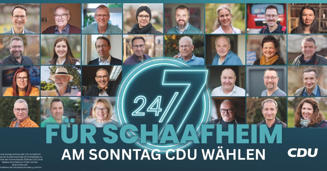 Am Sonntag entscheiden wir über die Zukunft unserer GemeindeWenn man durch Schaafheim, Mosbach, Schlierbach oder Radheim geht, merkt man schnell: Unsere Gemeinde lebt vom Engagement vieler Menschen.In Vereinen, bei der Feuerwehr, in Kirchengemeinden, Initiativen und Nachbarschaften übernehmen Bürgerinnen und Bürger Verantwortung für das Gemeinwohl.Auch Kommunalpolitik lebt von diesem Engagement ? von Menschen, die zuhören, abwägen und Entscheidungen treffen. Für unsere Ortsteile und für die Zukunft unserer Gemeinde.Am Sonntag, 15. März 2026, werden die Gemeindevertretung, die Ortsbeiräte und der Kreistag gewählt.Die Entscheidungen dort betreffen ganz konkrete Themen unseres Alltags:Kinderbetreuung und Schulen, Straßen und Infrastruktur, Unterstützung für Vereine, Sicherheit, die Entwicklung unserer Ortsteile sowie wichtige Themen im Landkreis Darmstadt-Dieburg wie Schulen, Krankenhäuser oder den öffentlichen Nahverkehr.Die CDU Schaafheim steht seit vielen Jahren für verlässliche Kommunalpolitik mit Augenmaß. Schritt für Schritt wurden Projekte angestoßen und umgesetzt ? immer mit dem Ziel, unsere Gemeinde lebenswert zu erhalten und verantwortungsvoll weiterzuentwickeln.Dabei zeigt sich immer wieder: Gute Ideen brauchen Mehrheiten.Wichtig ist auch das gute Zusammenspiel zwischen Gemeindevertretung und Bürgermeister. Seit 2021 führt Daniel Rauschenberger unsere Gemeinde engagiert und bürgernah. Vieles konnte in dieser Zeit gemeinsam auf den Weg gebracht werden.Damit dieser Weg erfolgreich weitergehen kann, braucht es auch künftig eine starke CDU in der Gemeindevertretung, in den Ortsbeiräten und im Kreistag.👉 Deshalb unser Aufruf:Gehen Sie am Sonntag zur Wahl.Nutzen Sie Ihr demokratisches Recht und entscheiden Sie mit über die Zukunft unserer Gemeinde und unseres Landkreises.Ihre Stimmen für die CDU Schaafheim.#schaafheim #schlierbach #mosbach #radheim