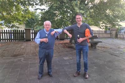 Angelangt bei den Stationen Hochwasserschutz und Alte Schule Radheim wurde auch auf das Thema Finanzen eingegangen. „Gerade in der vor uns liegenden schwierigen Zeit ist es wichtig, dass ein neuer Bürgermeister durch Kompetenz aus der Verwaltungspraxis aufwarten kann, der die Probleme vor Ort kennt und nahtlos zusammen mit den Bürgerinnen und Bürger diese lösen kann, um unsere Gemeinde in eine gute Zukunft zu führen. Das kann ich anbieten.“, bekräftige Daniel Rauschenberger seine Motivation als Bürgermeister zu kandidieren. Zum Abschluss kamen alle im Hof der alten Schule bei kühlen Getränken zusammen und ins Gespräch.