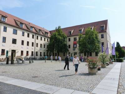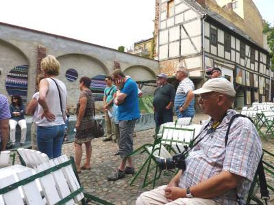 Am Schlossplatz wartete eine Stadtführerin auf uns, die uns auf eine „Luther“- Tour mitnahm. Schloss, Schlosskirche, Cranachhäuser mit sehr schönem Innenhof, Marktplatz mit altem Rathaus, Stadtkirche St. Marien mit dem alten Pfarrhaus „Bugenhagen“, alte Universität „Leucorea“ und die damaligen Wohnhäuser von Luther und Melanchton waren die Ziele.