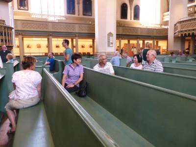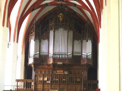 Zum Abschluss gab es einen Rundgang durch die Leipziger Altstadt. Er begann an der Thomaskirche. In Ihr predigte Martin Luther, und Johann Sebastian Bach wirkte dort als Kantor. Bekannt ist auch der Thomaner-Chor, ein Knabenchor, der sich besonders der Werke Bachs annimmt. Durch viele Innenhöfe und den Kaffeebaum, Leipzigs ältestes Kaffeehaus über den Marktplatz mit dem Alten Rathaus ging es zum Schlusspunkt der Nikolaikirche. Sie ist im Innern klassizistisch umgebaut. Ihre Orgel hat mehr als 6000 Pfeifen. Die längste Pfeife hat eine Höhe von 12 Metern. Die Kirche wurde 1989 weltbekannt, denn dort begannen nach den Montagsgebeten die Demonstrationen durch Leipzigs Straßen. In der Nikolaikirche konnte man Ausstellungen zu den KZ `s und den Montagsdemonstrationen sehen.