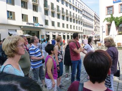 Am Freitagabend ging es gemeinsam nach dem Belegen der Zimmer in Auerbachs-Keller. Man stärkte sich im „Großen Keller“. Der Abend klang mit Musik am Platz vorm „Alten Rathaus“ aus.