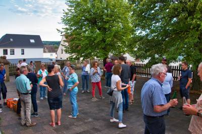 Angelangt bei den Stationen Hochwasserschutz und Alte Schule Radheim wurde auch auf das Thema Finanzen eingegangen. „Gerade in der vor uns liegenden schwierigen Zeit ist es wichtig, dass ein neuer Bürgermeister durch Kompetenz aus der Verwaltungspraxis aufwarten kann, der die Probleme vor Ort kennt und nahtlos zusammen mit den Bürgerinnen und Bürger diese lösen kann, um unsere Gemeinde in eine gute Zukunft zu führen. Das kann ich anbieten.“, bekräftige Daniel Rauschenberger seine Motivation als Bürgermeister zu kandidieren. Zum Abschluss kamen alle im Hof der alten Schule bei kühlen Getränken zusammen und ins Gespräch.