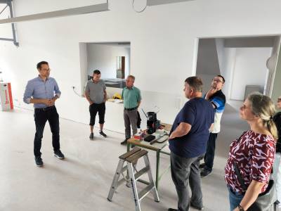 Bürgermeister Daniel Rauschenberger führte durch die neuen und neugestalteten Räume. Besonders positiv hervorgehoben wurde dabei die Zusammenarbeit mit der Energiegenossenschaft Odenwald (EGO), die das Projekt schlüsselfertig an die Gemeinde übergeben wird. Bereits beim Neubau der Kita in der Wilhelmstraße hatte sich die Kooperation mit der EGO bewährt, sodass die Entscheidung, auch beim aktuellen Bauvorhaben erneut auf dieses Modell zu setzen, von Anfang an richtig war. Auf dem Dach wurde zudem eine Photovoltaikanlage installiert, die zur nachhaltigen Energieversorgung beiträgt und hervorragend zum Selbstverständnis Schaafheims als „Klimakommune“ passt.